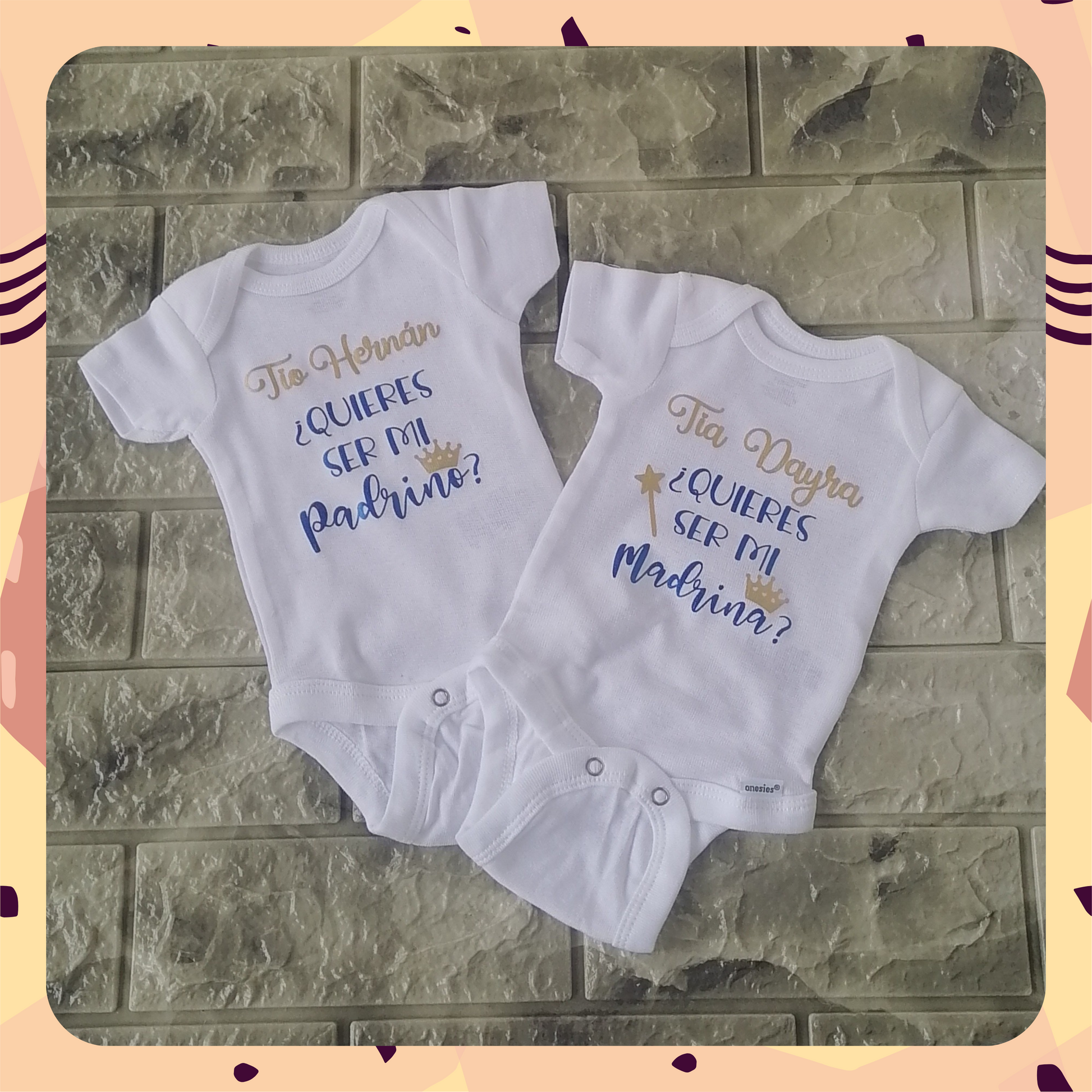 Incluye un body padrino y un body madrina.