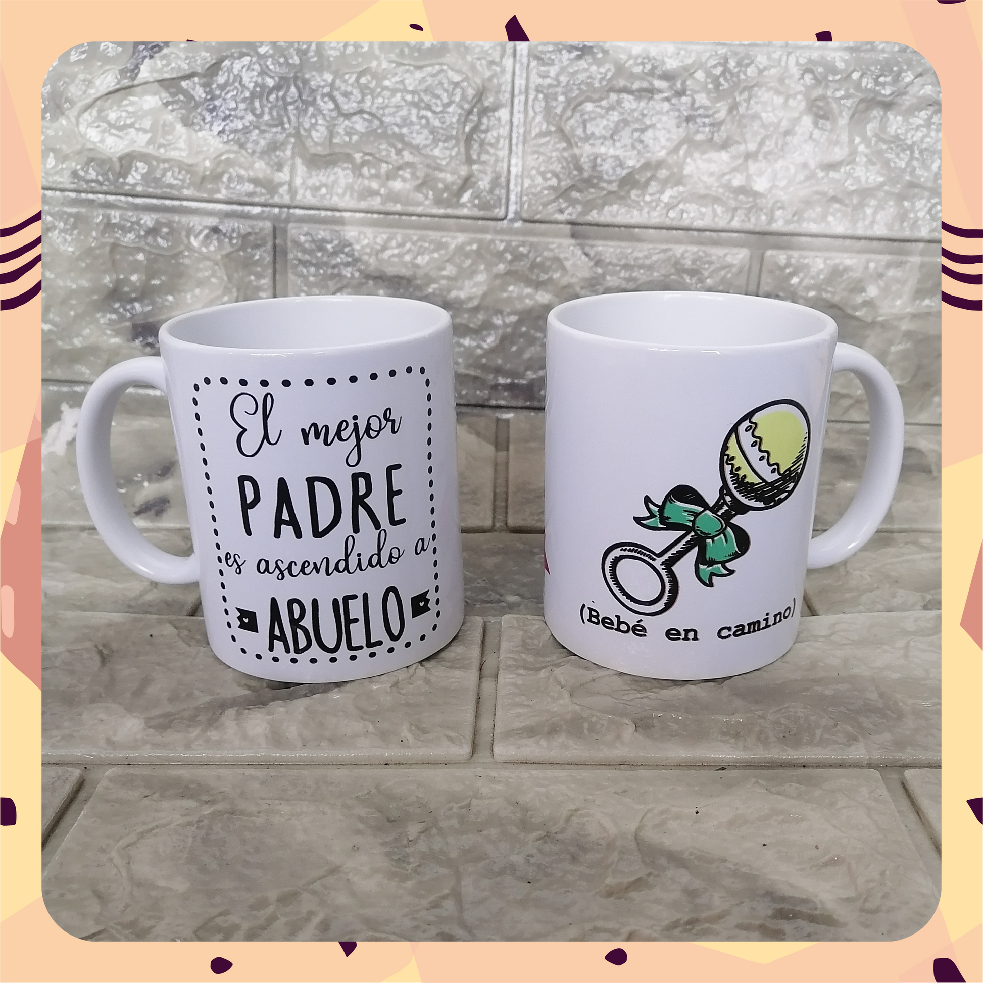 Taza con mensaje el mejor padre es ascendido a abuelo, una excelente opción para dar la noticioa de que un bebé viene en camino