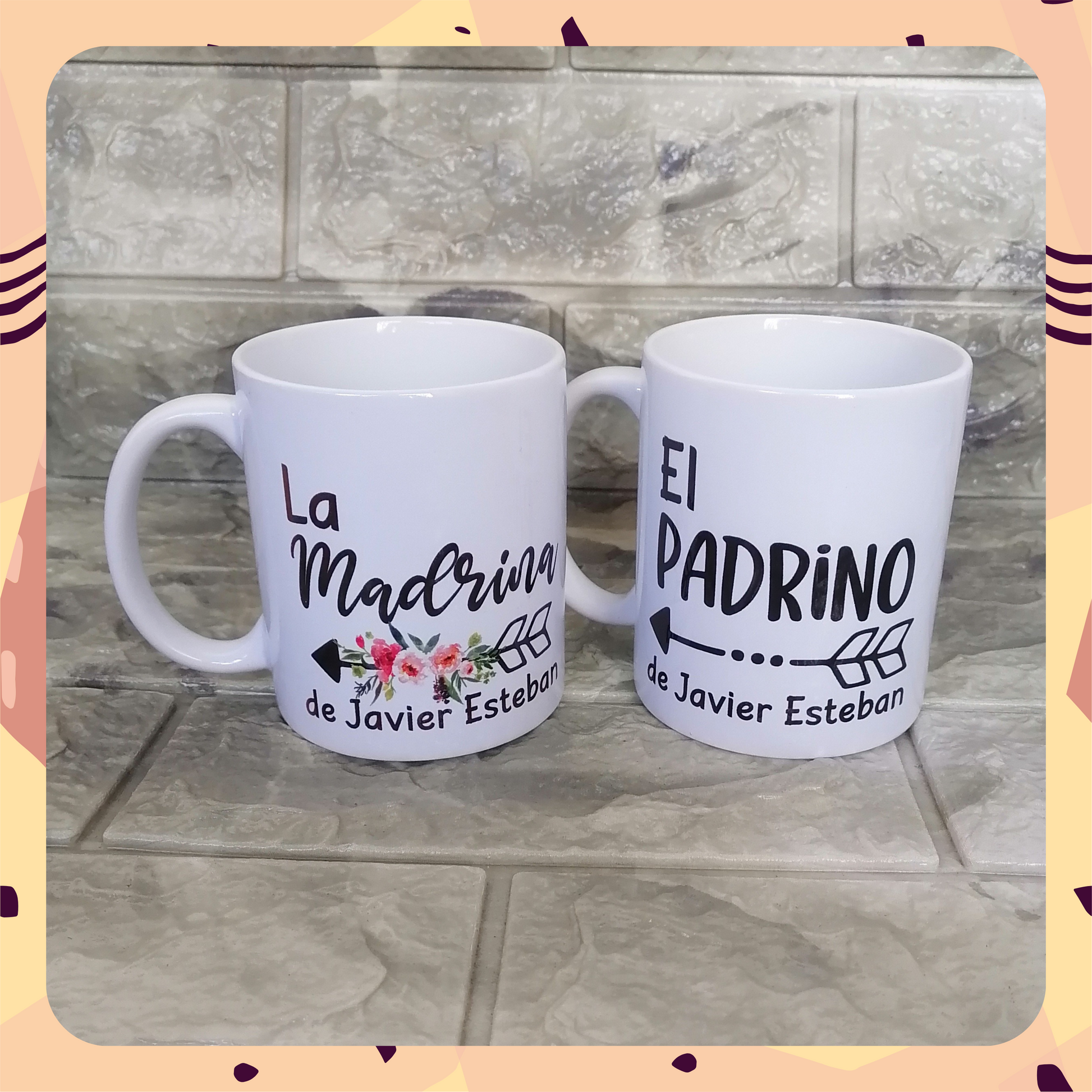 Duo de tazas con mensaje para las personitas especiales que deseas que sean los padrinos de tu bebé